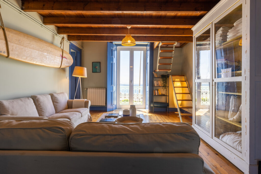 Discover the serenity of our ‘Point Break’ room, a tranquil space on the ground floor of Surf Lisbon – The House. Adorned in white, this room features 2 single beds that can be separated for a twin setup or joined for a cozy double configuration. Gaze out of the window onto the lush front garden, infusing the room with a refreshing green hue. Capture moments of tranquility as you enjoy a partial ocean view, with the iconic Bugio lighthouse standing tall in the midst of the sea. Experience comfort and coastal charm in this inviting space. Book your stay and let the Point Break room be your retreat by the sea!